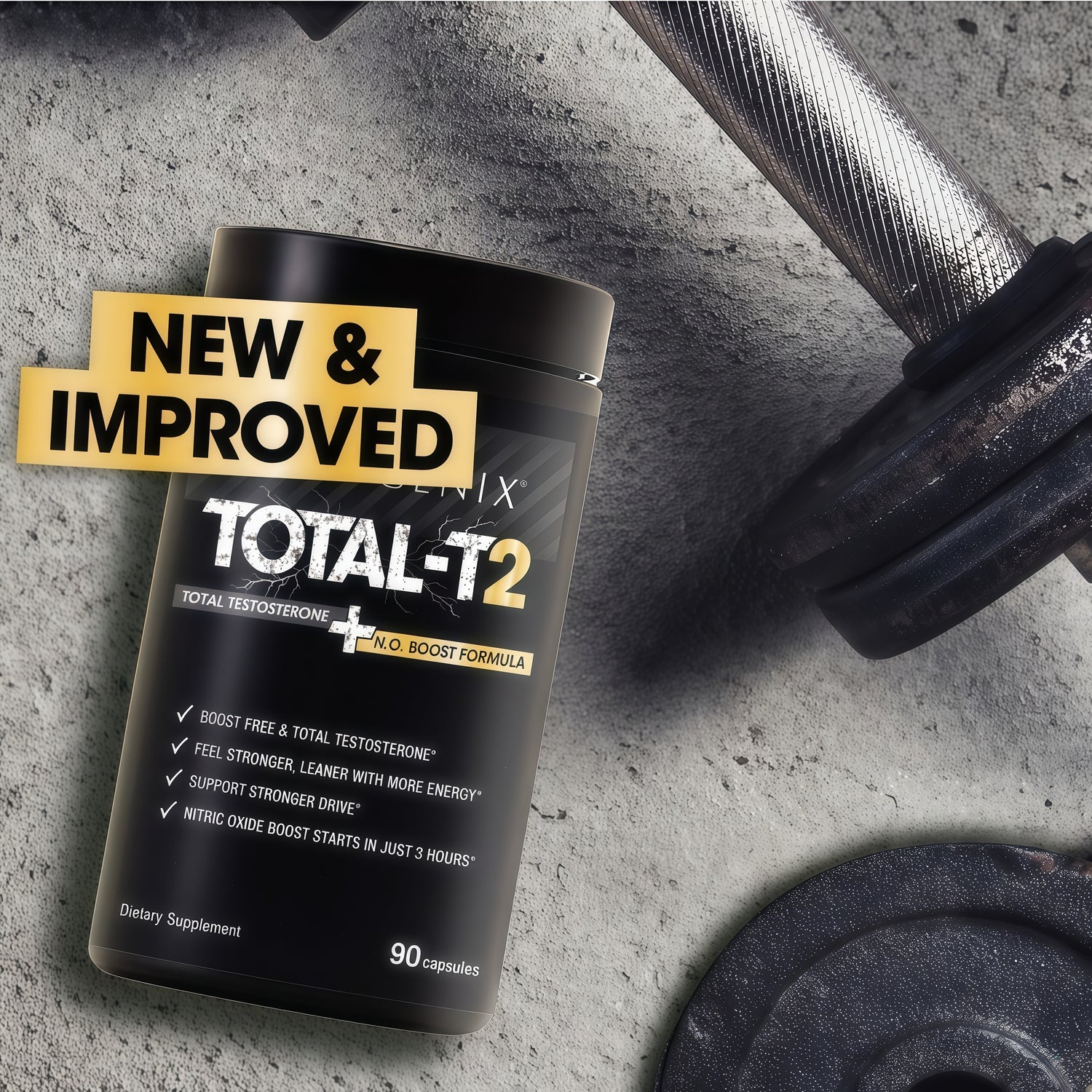 We’ve taken the flagship formula of our #1 selling and #1 doctor recommended T-booster brand, and upgraded it to be our most powerful product yet. The New & Improved Total-T2 still ignites your body’s total testosterone production, and now it increases Nitric Oxide production too... starting in just 3 hours! This 2-in-1 booster maximizes your strength, muscle, energy, and endurance to get back in shape and feel like you used to. Get after it again with the NEW & IMPROVED Total-T2!